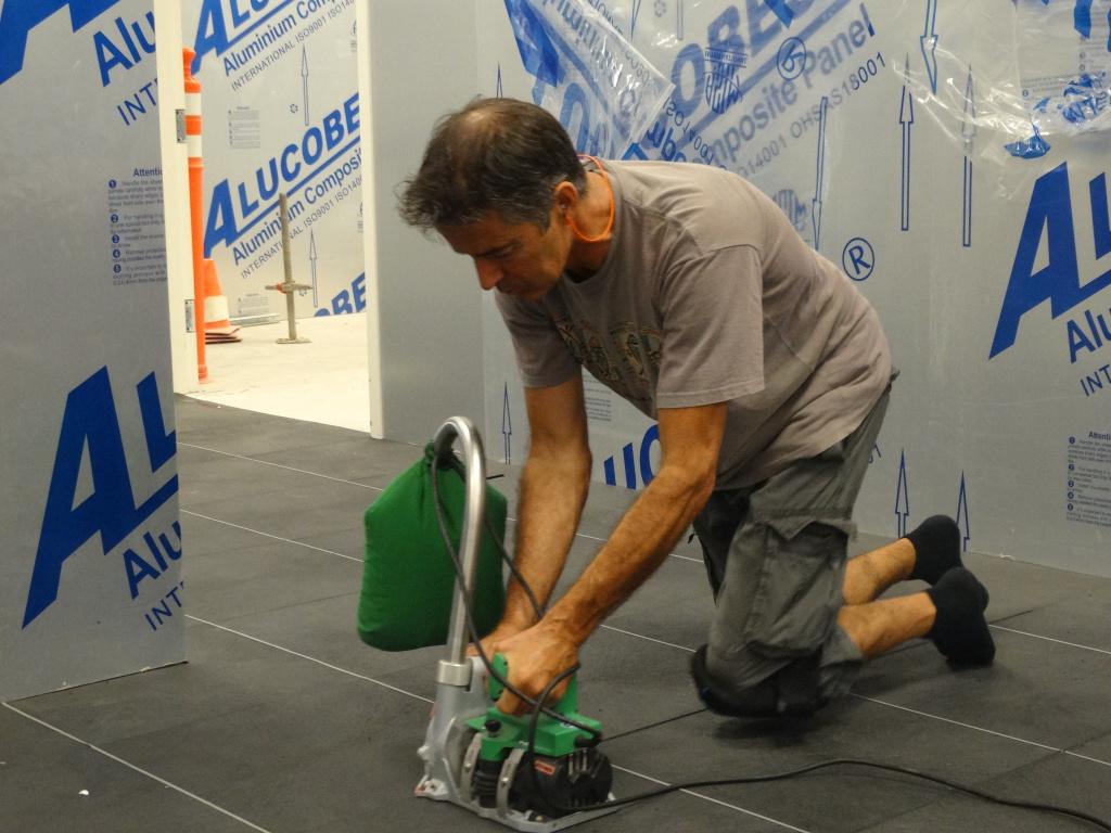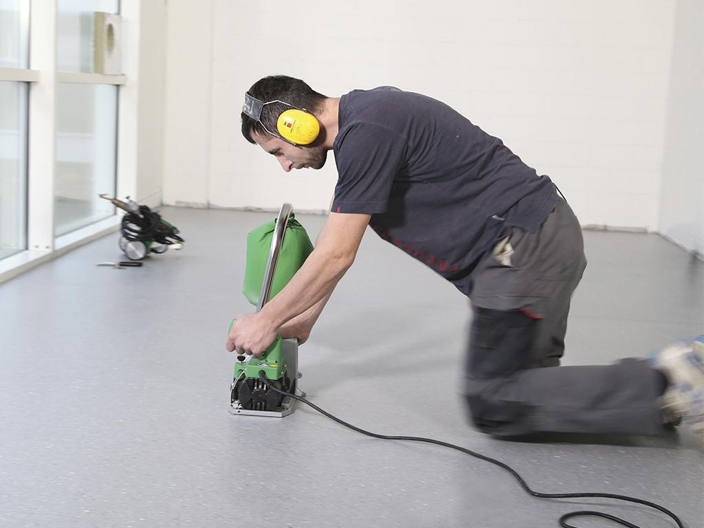 Разделка шва в толстых и вязких напольных покрытиях из ПВХ-пластика и в линолеуме при помощи резака GROOVY. |