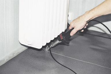 Компактный ручной аппарат горячего воздуха HOT JET S незаменим при сварке напольного покрытия в труднодоступном месте.