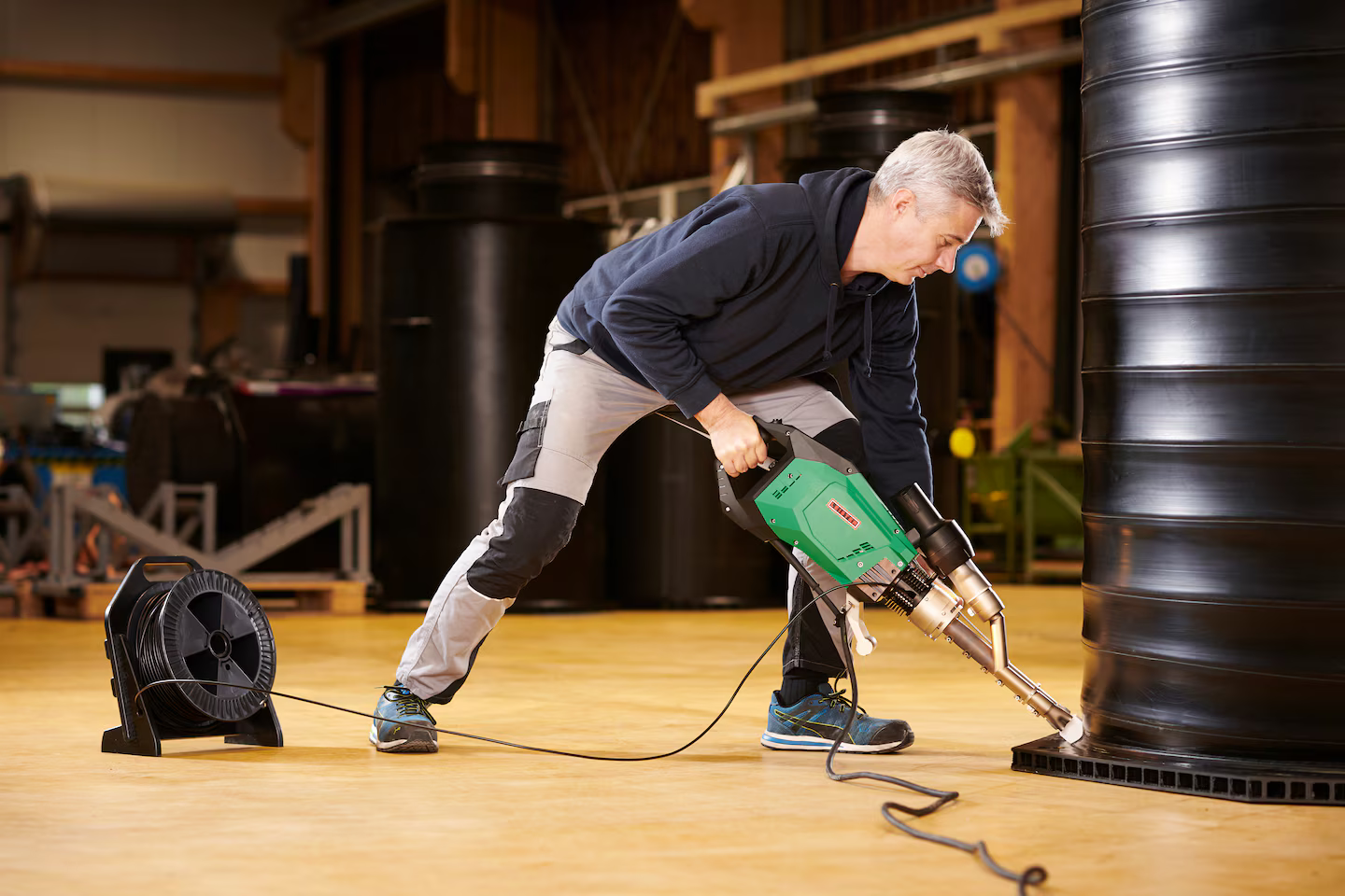 В дополнение к бесщеточному мотору вентилятора, WELDPLAST 600 также оснащен бесщеточным приводным мотором. Это позволяет добиться исключительной мощности и долговечности, а также гарантировать длительный срок службы при минимальном обслуживании. Специально предназначенный для сфер применения с использованием материалов ПЭНД и ПП, экструдер WELDPLAST 600 идеально подходит для экструзионной сварки резервуаров и контейнеров. Благодаря специально сконструированному шнеку, соплам предварительного нагрева и изменяемым положениям рукоятки, этот ручной экструдер отлично сбалансирован для применения в данной сфере. Все это делает экструдер Leister идеальным инструментом для сварки пластика с большим поперечным сечением. Благодаря механическим и электрическим интерфейсам WELDPLAST 600 предусматривает интеграцию в полуавтоматизированные рабочие процессы. При конструировании этого экструдера также учитывались возрастающие требования к качеству резервуаров и контейнеров. Поэтому WELDPLAST 600 оснащен проверенной системой качества Leister (LQS). С помощью приложения myLeister параметры сварки можно четко регистрировать в журнале в процессе сварки. Это является преимуществом для пользователей, поскольку позволяет контролировать качество выполненной работы. Экструдер WELDPLAST 600 предназначен для изготовления резервуаров и контейнеров Его аналогом для применения в гражданском строительстве является WELDPLAST 605.