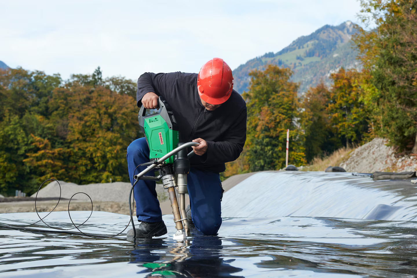 Идеально подходит для сварки геомембран из ПЭ, которые используются во всем мире в шахтах, на полигонах отходов, нерестовых аквариумах, сельскохозяйственных прудах и т .п. Примеры применения: сварка Т-образных соединений, обвязка, ремонтные работы и т. д. WELDPLAST 605 обладает многочисленными положительными характеристиками, которые делают его профессиональным ручным экструдером для гражданского строительства: Например, специальный шнек с двухзонным нагревом предназначен для экструзионной сварки геомембран. Различные сопла предварительного нагрева обеспечивают оптимальный нагрев зоны сварки. Отлично сбалансированная изогнутая рукоятка предусматривает различные положения хвата, облегчает переноску и транспортировку, а также позволяет безопасно поставить экструдер. Для большей адаптируемости при сварке WELDPLAST 605 имеет двустороннюю подачу сварочного прутка (справа и слева). Кроме того, как приводной мотор, так и мотор нагнетателя WELDPLAST 600 являются бесщеточными, что повышает надежность и долговечность экструдера Leister при минимальном объеме технического обслуживания. Светодиодная подсветка WELDPLAST 605 освещает зону сварки, что облегчает работу в темных или слабо освещенных местах. В то же время светодиодный индикатор показывает, когда сварочный экструдер достиг рабочей температуры. Кабельный вывод WELDPLAST 605 оптимизирован для гражданского строительства и поэтому расположен под корпусом экструдера. Это позволяет практически беспрепятственно направлять его вперед при сварке. Благодаря интеллектуальному управлению питанием, пониженное напряжение компенсируется до определенного уровня. Это позволяет добиться стабильного качества сварки. Благодаря экорежиму пользователи экономят до 40 % энергии во время перерывов в работе. При конструировании этого ручного экструдера также учитывались возрастающие требования к качеству в гражданском строительстве. Поэтому WELDPLAST 605 оснащен проверенной системой качества Leister (LQS), как и новые сварочные автоматы GEOSTAR и TWINNY. С помощью приложения myLeister параметры сварки, включая GPS-координаты, также записываются и четко фиксируются в журнале в процессе сварки. Как уже упоминалось в начале, экструдер WELDPLAST 605 предназначен для использования в гражданском строительстве. В качестве альтернативы для изготовления резервуаров и контейнеров существует специальный сварочный экструдер: WELDPLAST 600.
