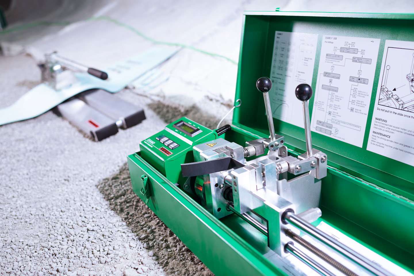 Устройство для проверки мембран можно использовать сразу же после открытия крышки. Устройство для проверки надежно закреплено в металлическом ящике, что делает его очень устойчивым. Руководство по эксплуатации, нанесенное на крышку, легко читается. Мембранный тензиометр EXAMO 600F USB сконфигурирован уже в процессе изготовления. Образцы мембран можно тестировать в соответствии со стандартами DVS и ASTM. Устройство для проверки мембран предлагается в дополнительном варианте: EXAMO 300F USB для более толстых мембран.