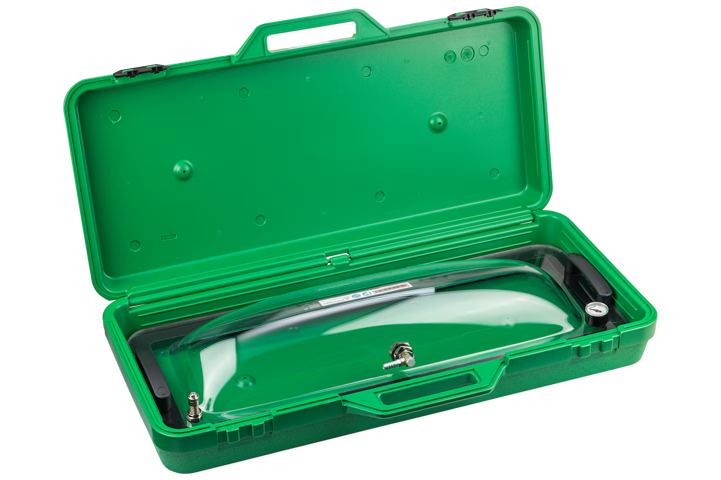 VACUUM BOX от Leister позволяет легко проверить сварные швы пластиковых деталей на наличие утечек. Долговечная модель из прозрачного ударопрочного пластика, надежно герметизирована и идеально подходит для работы в области геопроектов. Прямоугольное устройство для тестирования с испытательной площадкой 810 x 310 мм имеет большие размеры. Манометр также имеет шкалу в бар и фунтах на квадратный дюйм.