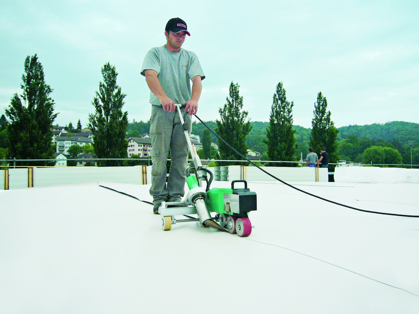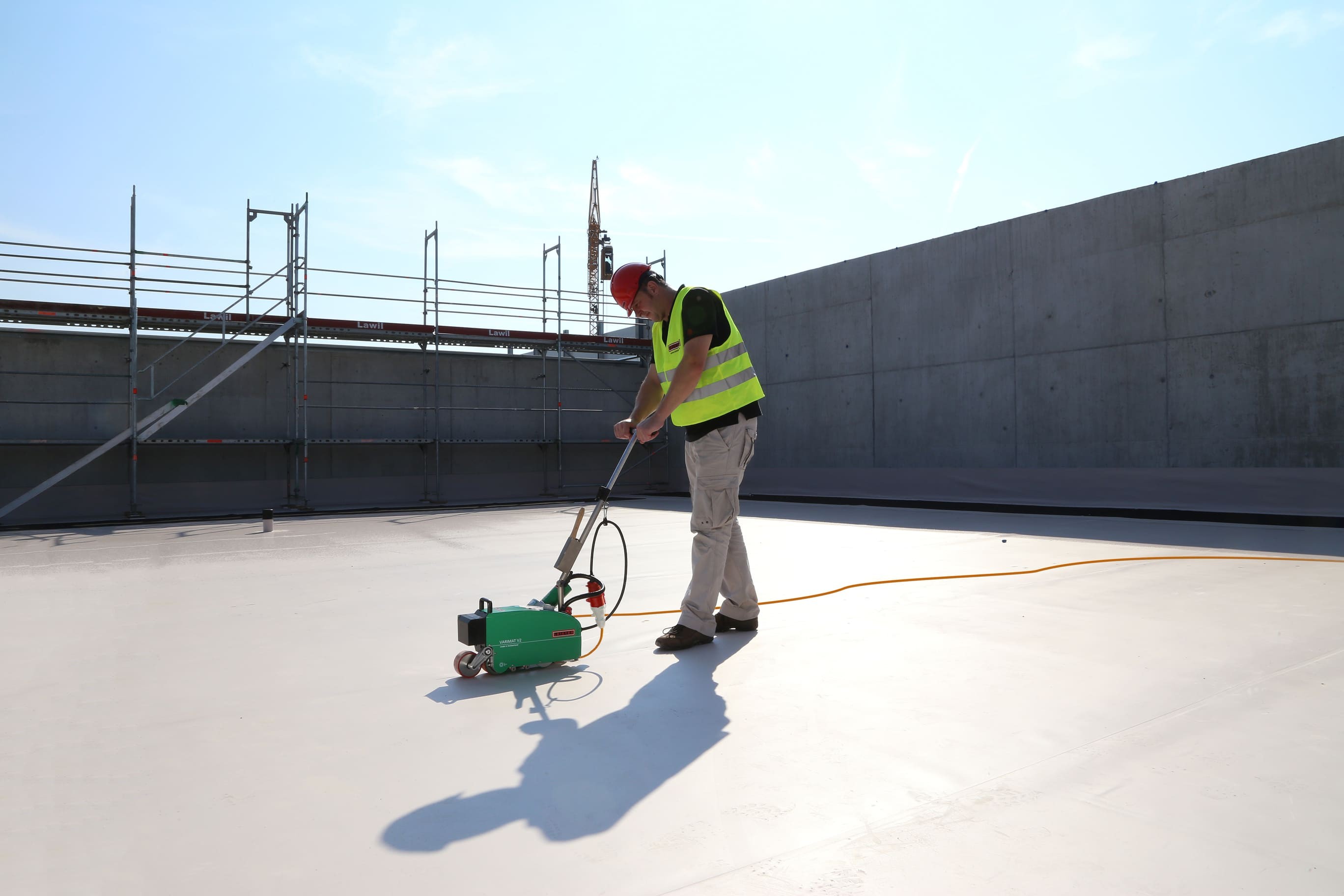Как инновационный сварочный аппарат с оптимизированной эргономикой, простым управлением и дисплеем с электронным приводом, VARIMAT V2 обеспечивает эффективную сварку пластиковых мембран на кровле, в бассейнах, баннеров и тентов.