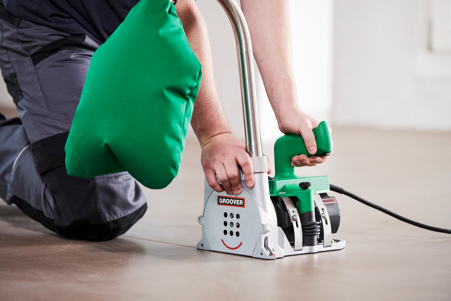 Аппарат для расшивки швов GROOVER компании Leister расшивает сварные швы в эластичных напольных покрытиях из пластиков, таких как ПВХ (винил), ПЭ, ХВ, ПУР, и натуральных материалов, таких как линолеум и резина. Инструмент перемещается на трех роликах и обеспечивает равномерную глубину разделки даже на высокой скорости. Эластичные напольные покрытия идеально подготовлены для сварки горячим воздухом и холодного нанесения герметиков. Аппарат GROOVER компании Leister оснащен тумблером с двумя выбираемыми уровнями для установки скорости вращения фрезы.