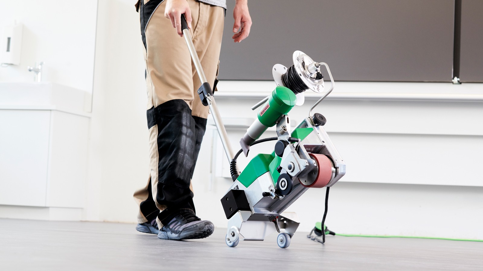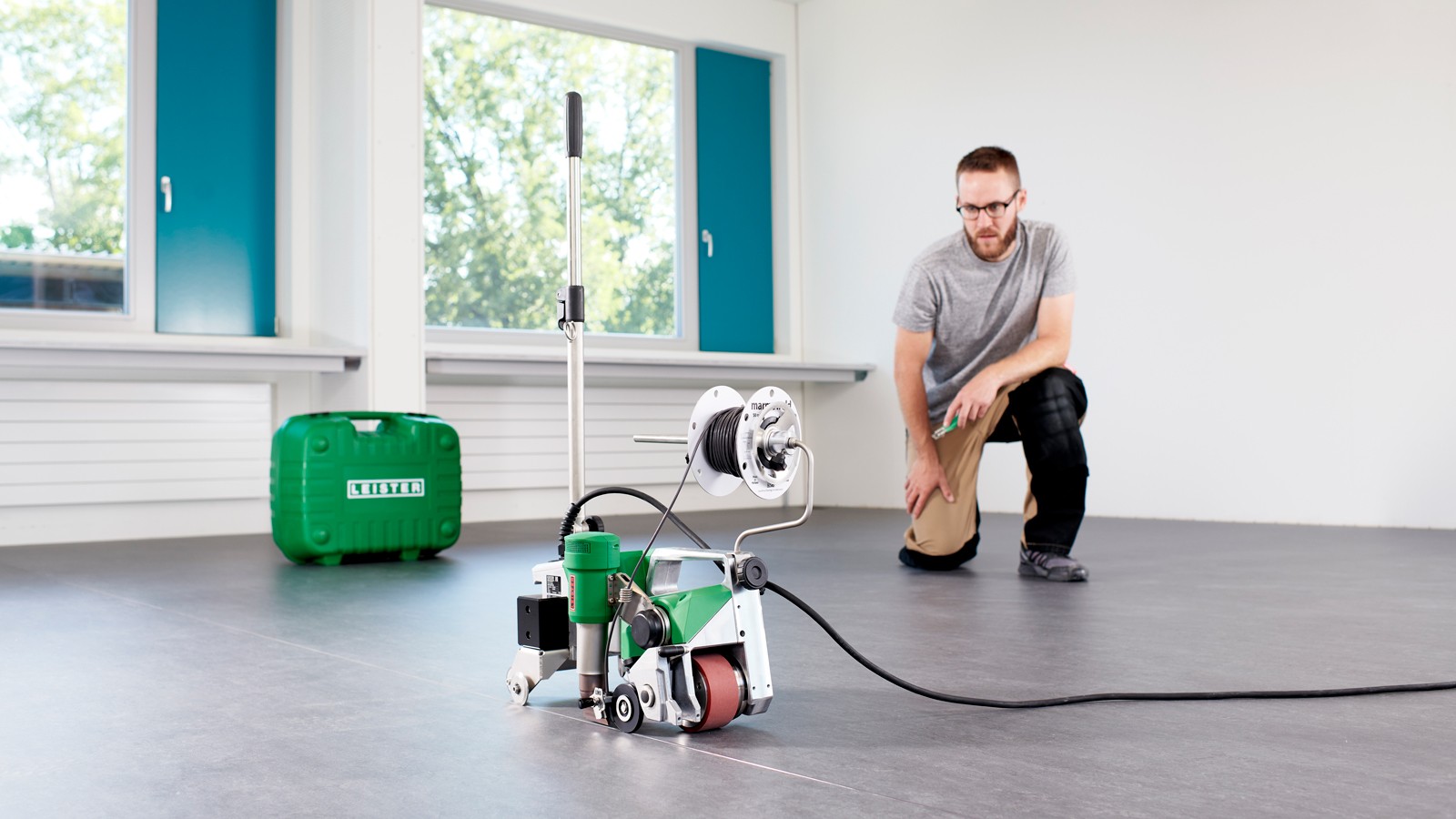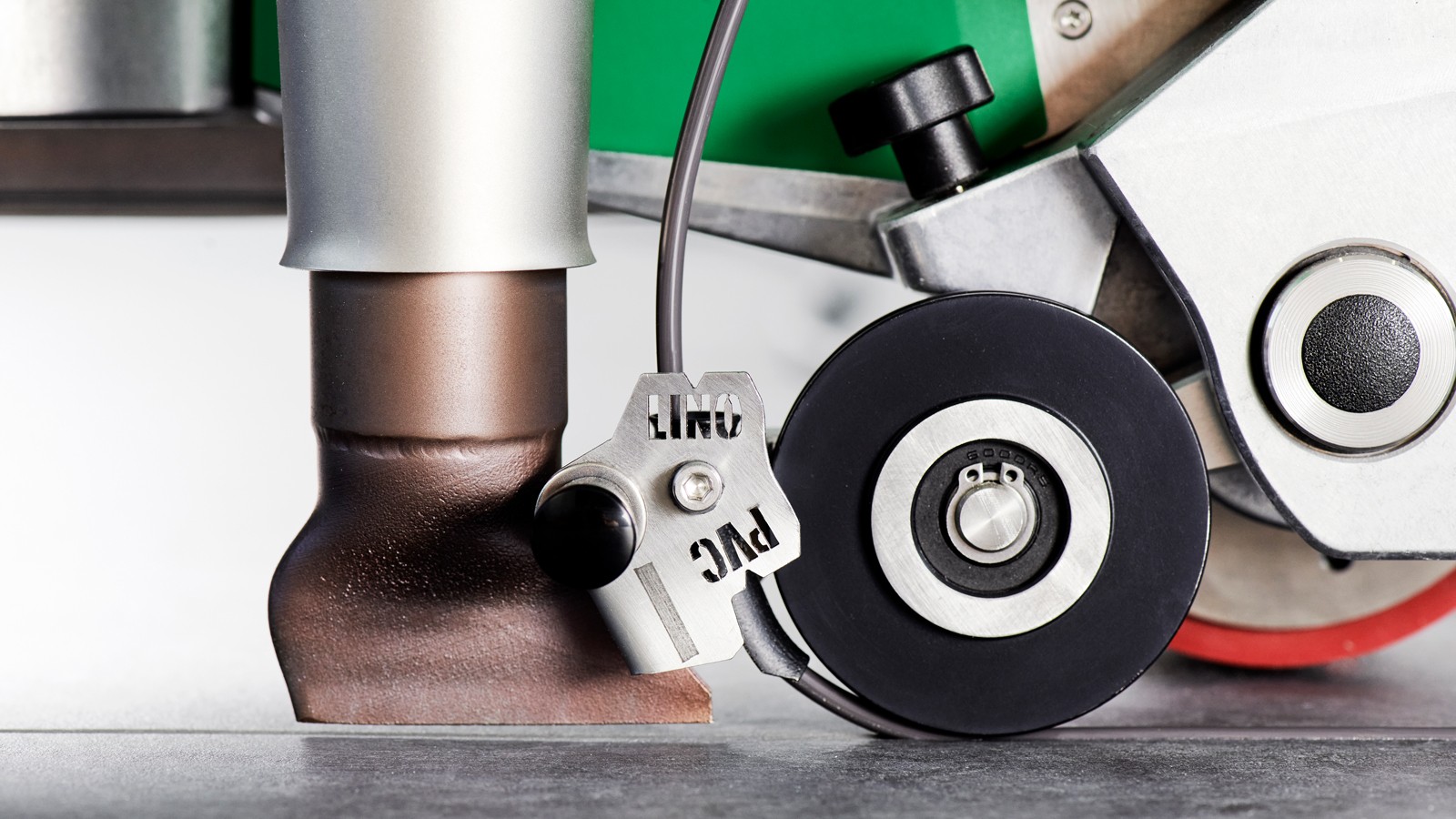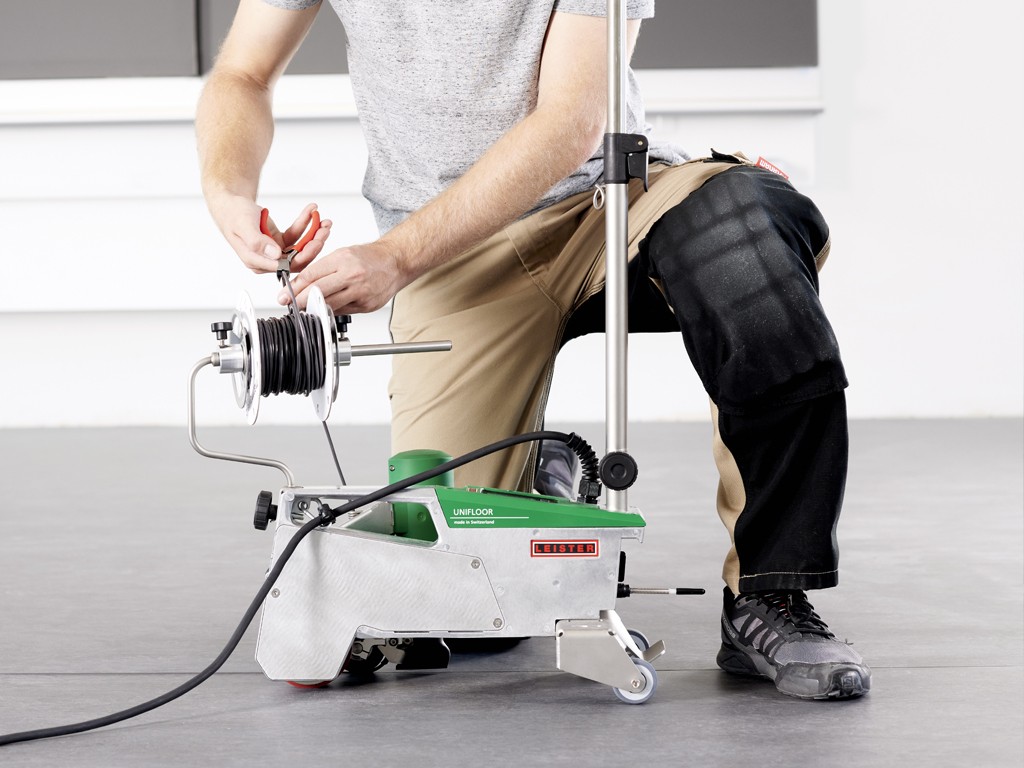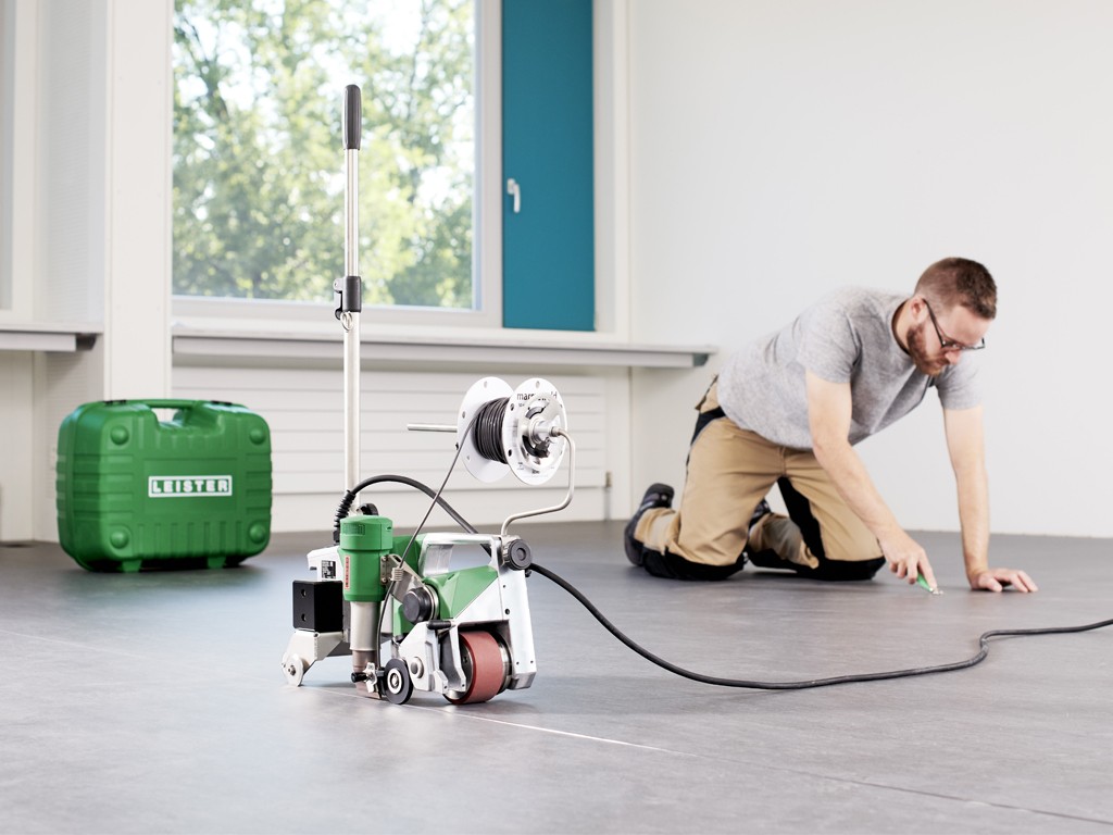 Кроме того, воздуходувка автоматически поворачивается при касании препятствий, например, если воздуходувка соприкасается со стеной, что практически полностью исключает повреждение напольного покрытия. Благодаря этому машина UNIFLOOR 500 является особенно инновационным и надежным автоматическим сварочным аппаратом. При проектировании UNIFLOOR 500 основное внимание уделялось не только техническим требованиям, но и удобству использования. По этой причине сварочный автомат имеет направляющую штангу и гладкие колесики для перемещения, что позволяет легко перемещать его с полосы движения на полосу. Это особенно окупается при укладке эластичных и антистатических напольных покрытий в больших зданиях, таких как школы и больницы. Автоматическая машина для сварки напольных покрытий Leister также очень хорошо подходит для укладки особенно больших и прочных промышленных полов. Как и большинство автоматов, сварочных аппаратов и фенов Leister, UNIFLOOR 500 также оснащен бесщеточным приводом и мотором воздуходувки, что делает его особенно долговечным и бесшумным. Когда инструменты находятся в положении покоя, расход воздуха в воздуходувке автоматически уменьшается, что снижает уровень шума до минимума. Три параметра, необходимые для правильной сварки, температуры, скорости и расхода воздуха, четко отображаются на дисплее и легко настраиваются. При разработке этого сварочного аппарата для напольной сварки были также учтены различные диаметры сварочного прутка, такие как 5 мм, 4 мм и 3 мм. Это связано с тем, что контактное давление прижимного ролика может регулироваться регулировочным винтом. Кроме того, прижимной ролик может быть сложен, что позволяет легко вставлять сварочную проволоку, не наклоняя UNIFLOOR 500. Дополнительная заслонка, прикрепленная к прижимному ролику, уменьшает количество предварительно нагретого воздуха для надежной сварки натурального линолеума и резиновых напольных покрытий. Держатель для рулонов сварочного прутка, оптимизированный по сравнению с предшествующими моделями UNIFLOOR E/S. Это позволяет быстро и легко закреплять его с помощью винта. Таким образом, все распространенные на рынке рулоны сварочного прутка или катушки сварочного прутка могут быть оптимально размещены на держателе. Кроме того, на транспортной оси закреплен боковой резак, поэтому у пользователя всегда под рукой имеется подходящий инструмент для резки сварочного прутка на конце стыка. Все эти преимущества делают UNIFLOOR 500 практичным автоматическим сварочным аппаратом, идеально подходящим для профессиональной укладки напольных покрытий и сварки. Кроме того, швы в соответствующих покрытиях водонепроницаемы и герметичны, а также, в зависимости от требований, быстро и эффективно