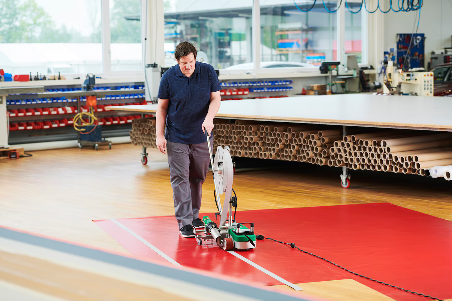 Сварочный аппарат VARIANT T1 идеально подходит для наварки армирующей и антивандальной ленты на автотенты или баннерную ткань. Эксплуатационная концепция e-Drive позволяет легко установить соответствующие параметры сварки. Система подачи ленты и недавно разработанные направляющие ролики подают ленту под прижимной ролик, сохраняя ее натяжение вплоть до последнего сантиметра.